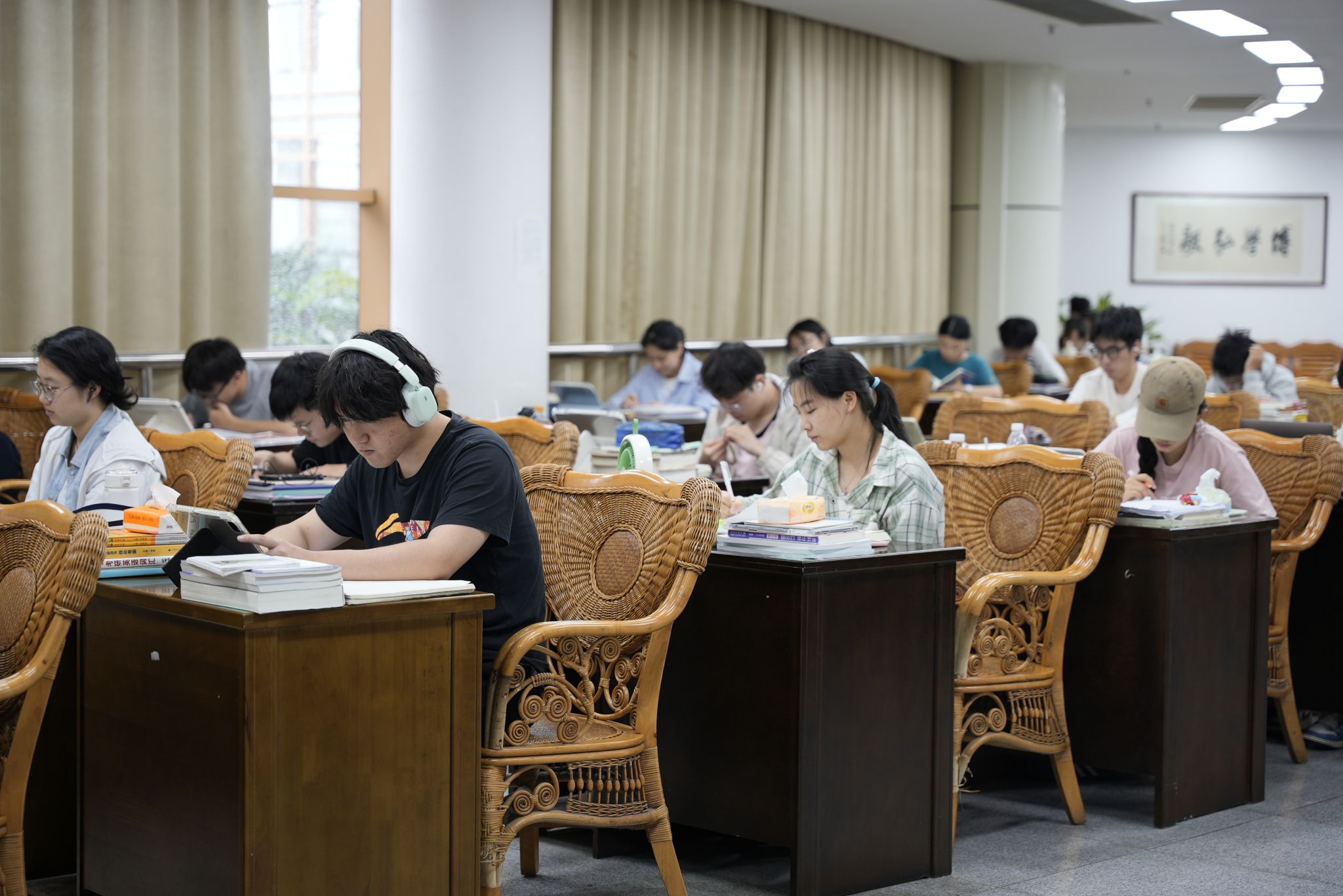 在图书馆和自习室,安静得仿佛能听见时间流淌的声音。笔尖的每一次落下,书页的每一次翻动,都在提醒着:这里的所有人都在为梦想和目标默默努力。这一“比任何闹钟都管用”的沉浸式学习状态,是电子信息工程221班的李天阔决定暑期留校考研的原因。与家中“干扰因素太多”的环境相比,学校的备考氛围让他能轻易放下手机,全身心投入学习,踏实高效地完成每日学习任务。
