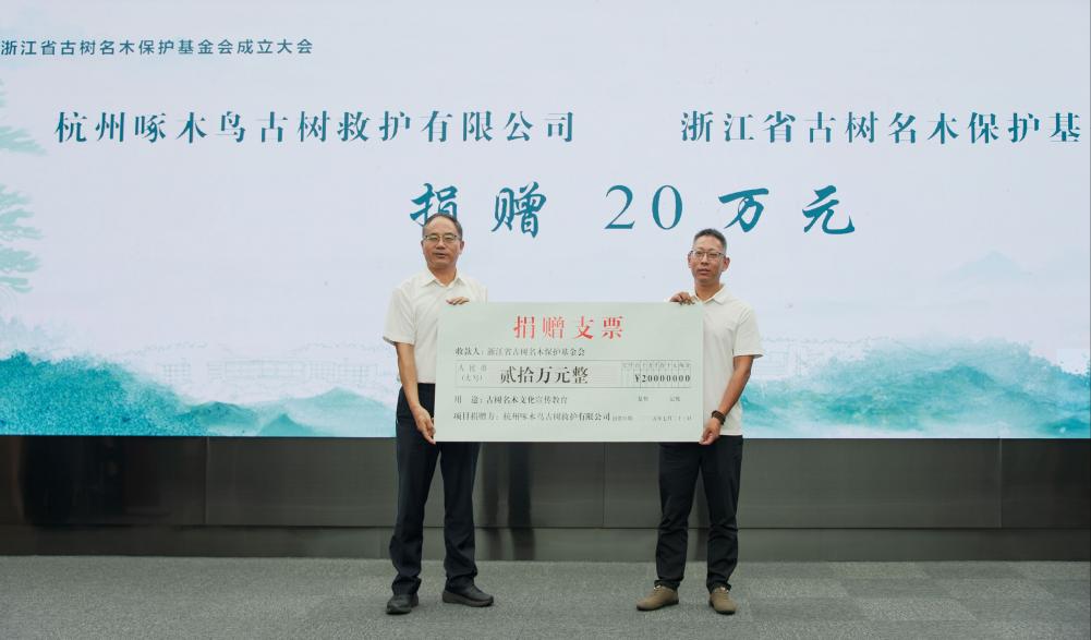捐赠和资助仪式上,杭州啄木鸟古树救护有限公司捐赠20万元,用于支持浙江省古树名木保护、人才培养、科学研究与文化传承工作。远策投资管理有限公司董事长张益驰先生向浙江省古树名木保护基金会捐赠10万元。基金会向开化县林业局资助人民币10万元,用于支持开化县古树名木救护、养护管理等工作;向学校团委捐赠资助人民币10万元,用于支持2025年大学生暑期社会实践“家乡的一棵树”古树名木寻访专项活动。