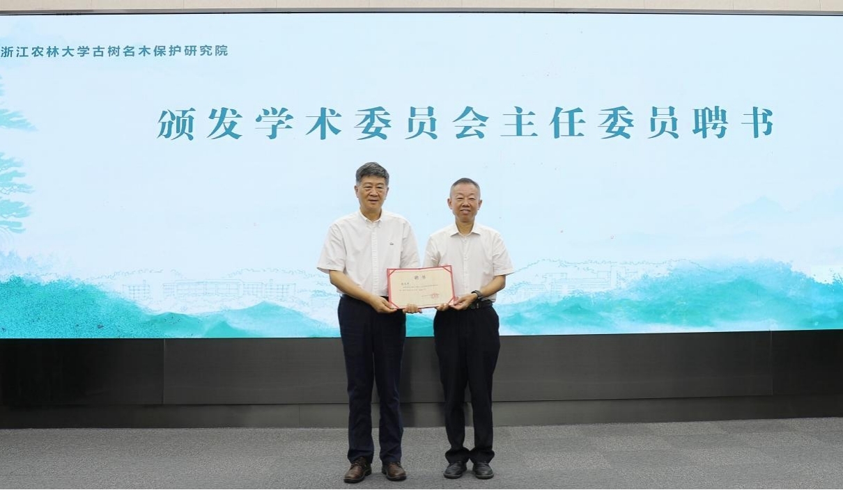 大会还举行了“浙江省古树名木保护基金会”揭牌仪式,周国富、赵良平共同为“浙江省古树名木保护基金会”揭牌;举行了研究院学术委员会委员聘任仪式,吴家胜为赵良平颁发beat365平台唯一官网古树名木保护研究院学术委员会主任聘书。