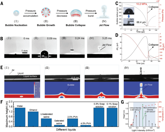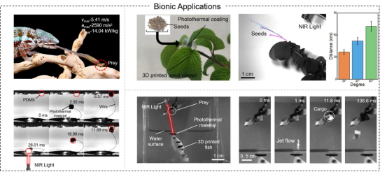 本文首次创新性地提出并验证了一种基于空化效应的高效发射机制,通过精确控制液体中气泡的剧烈溃灭过程,将传统上具有破坏性的空化现象转化为可控、高效的动力源,成功实现了微小型器件的高速跳跃、游泳和精准运动,在智能生物技术领域展现出重要的应用潜力。