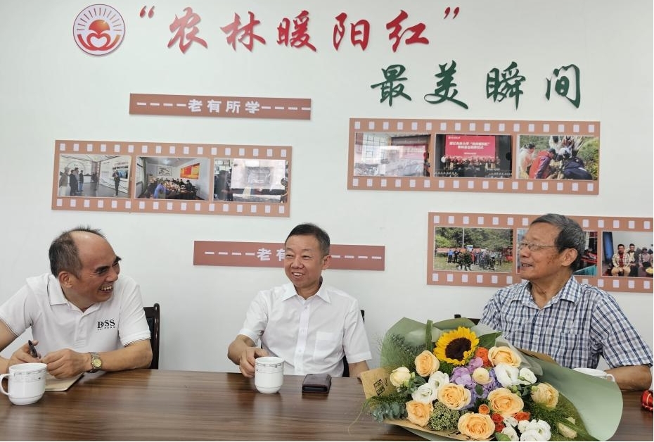 朱斌、吴家胜先后走访慰问了胡勇、方伟、张俊飚、桂金山、张进、罗文进等专家教授和离退休教师,仔细询问了各位老师的工作与生活情况,认真听取大家对学校事业发展的意见和建议。