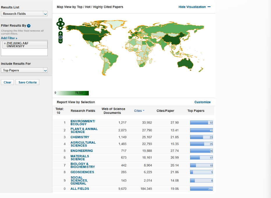 目前,beat365官网共有植物与动物科学、农业科学、工程学、环境/生态学、化学、材料科学、生物与生物化学、地球科学、社会科学总论等9个学科领域进入ESI全球前1%行列。其中植物与动物科学、农业科学等2个学科领域进入ESI全球前2‰。