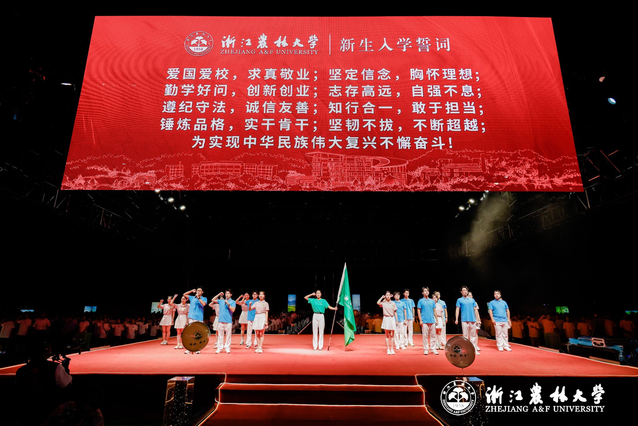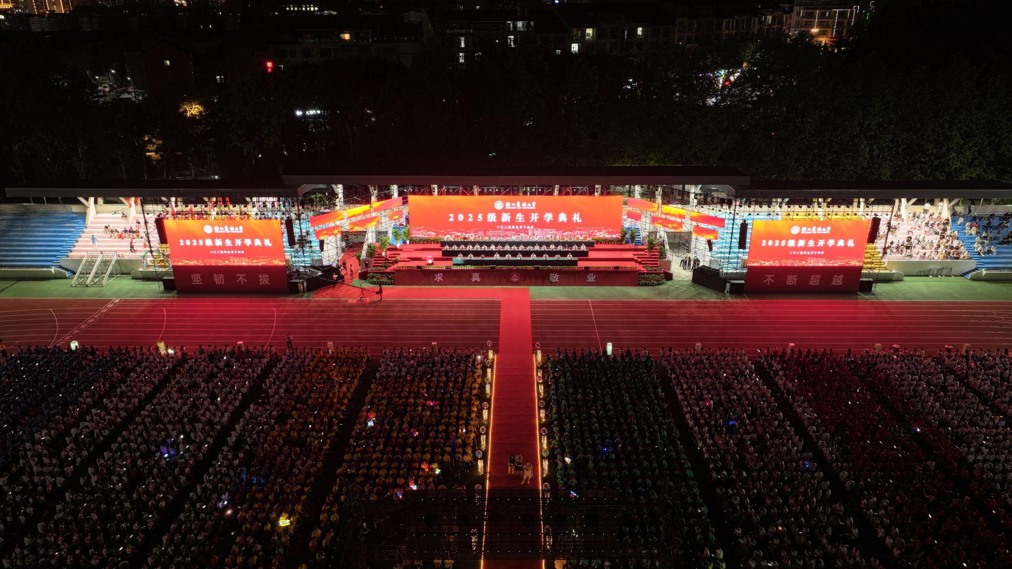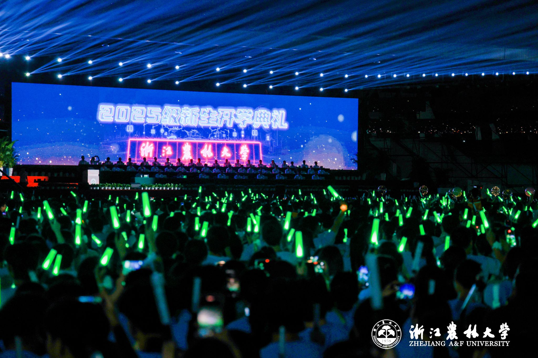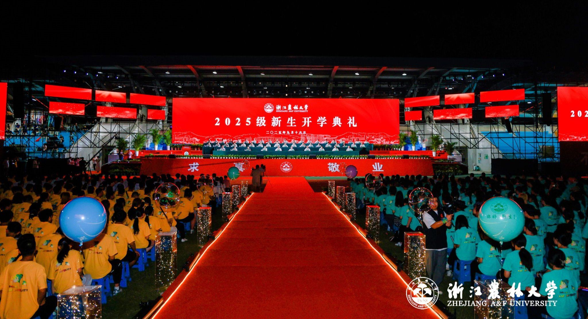 9月16日晚,beat365平台唯一官网2025级新生开学典礼在东湖校区隆重举行。5340名本科生、2143名硕博研究生、423名留学生共聚一堂,与beat365平台唯一官网“双向奔赴”,共同开启崭新的奋进篇章。超过20万人次通过浙农林大官方全媒体平台线上观看直播,共同分享新生们步入大学的喜悦,一起见证新生开启人生新的征程。