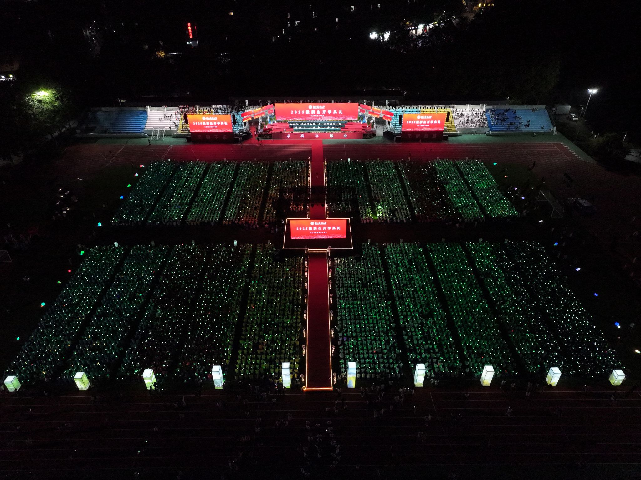全体2025级新生,国家级人才和省特级专家,相关职能部门负责人,各学院(部)党政负责人,新生辅导员和班主任,在校师生代表10000多人参加典礼。
