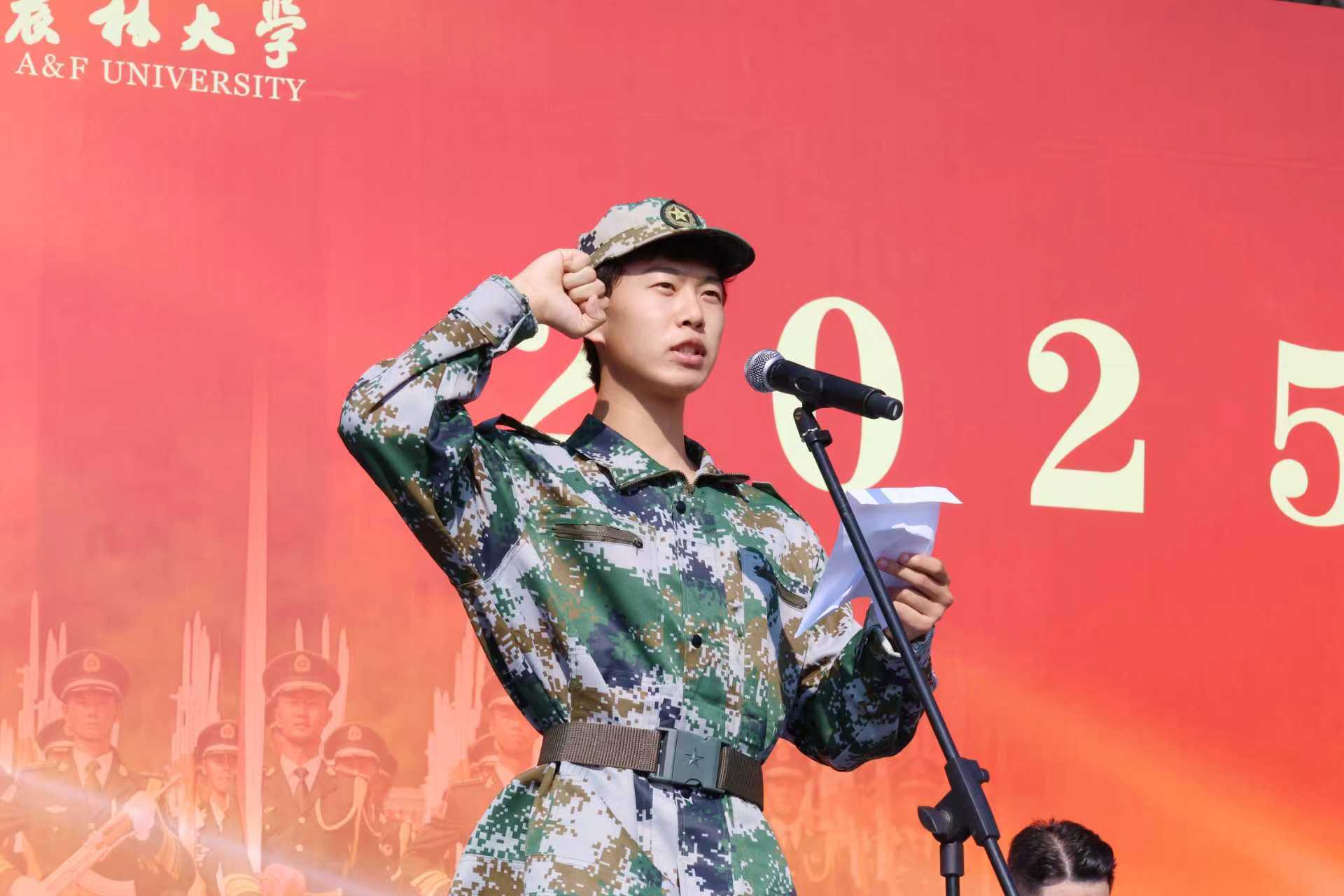 九三阅兵参阅代表王珏同学结合自身经历,鼓励新生在军训中锤炼意志、增强体魄。林生院叶展宏同学代表全体参训新生宣誓,表示将以饱满热情投入军训,严守纪律,坚持到底。军训师教官代表承诺将科学组训、严格管理,确保军训任务圆满完成。