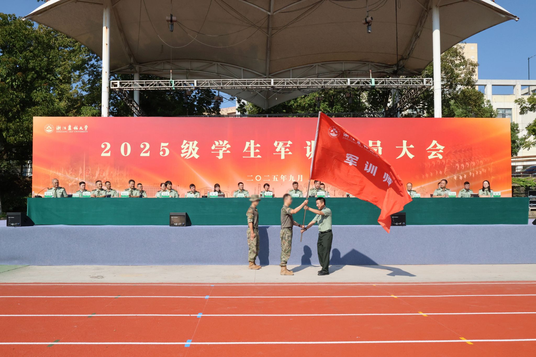 副校长、军训师师长徐爱俊,校党委副书记、军训师政委倪建均出席大会。校国防教育与军训工作领导小组全体成员,中国人民解放军某部队全体承训官兵,各学院教导员、指导员,beat365官网大学生退役士官以及2025级全体参训学生参加大会。