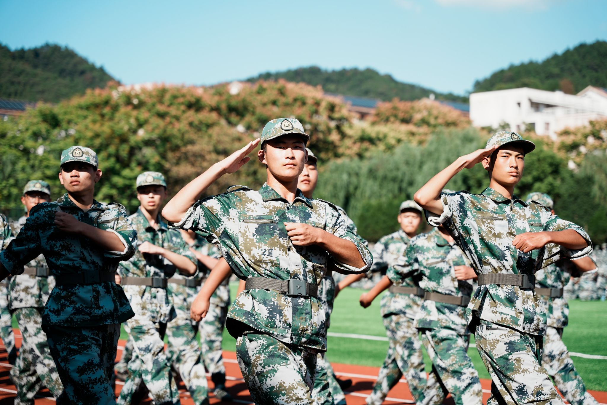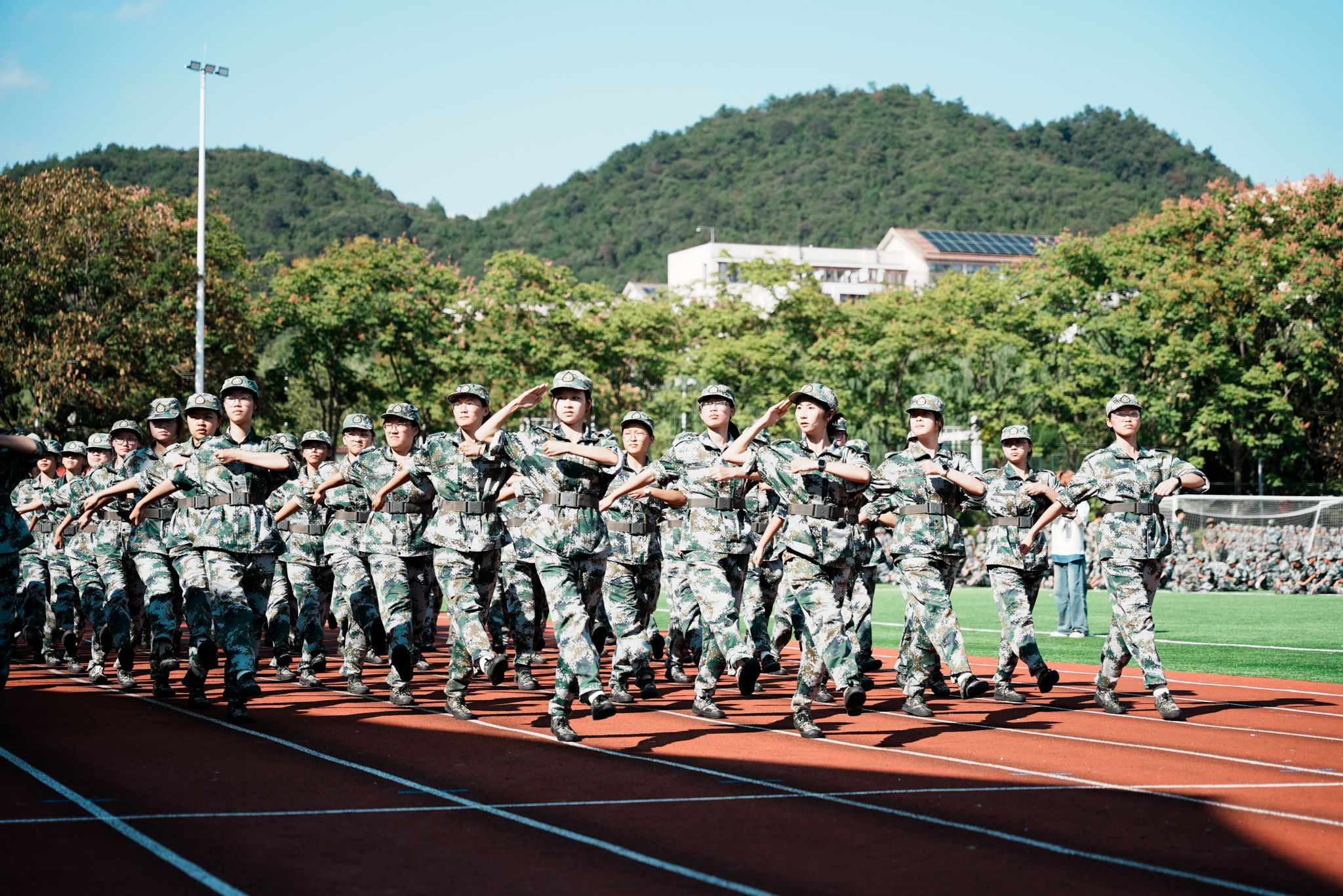 军训期间,同学们纪律严明、团结协作,掌握了基本的军事知识和技能,增强了国防意识、安全意识、爱国主义精神和集体荣誉感,展现出艰苦奋斗的优良作风和奋发向上的精神风貌。
