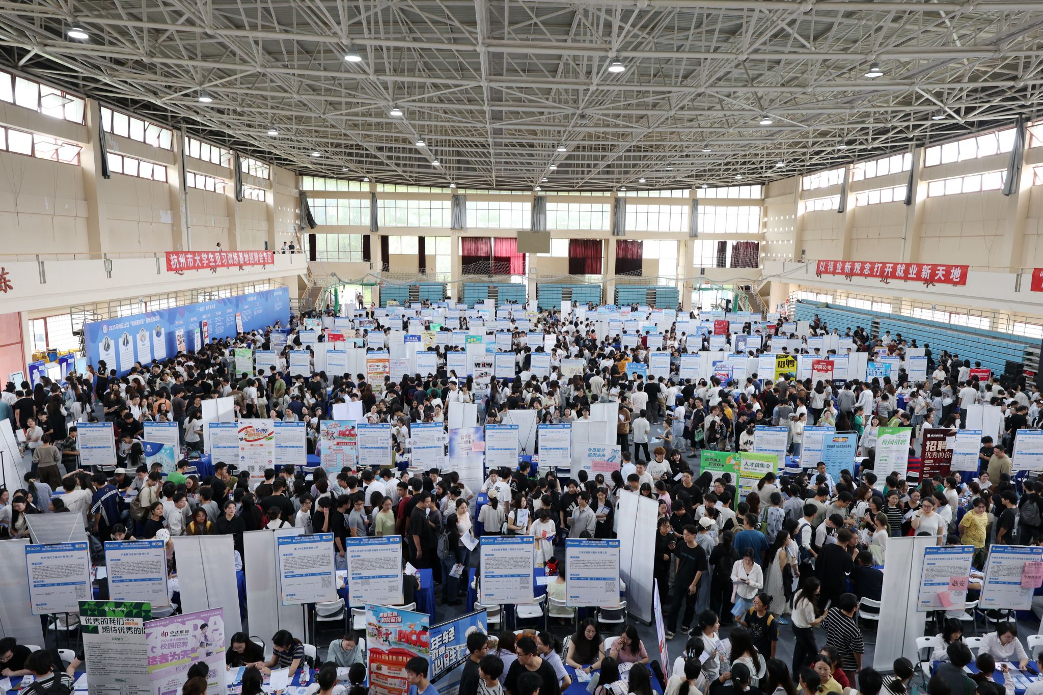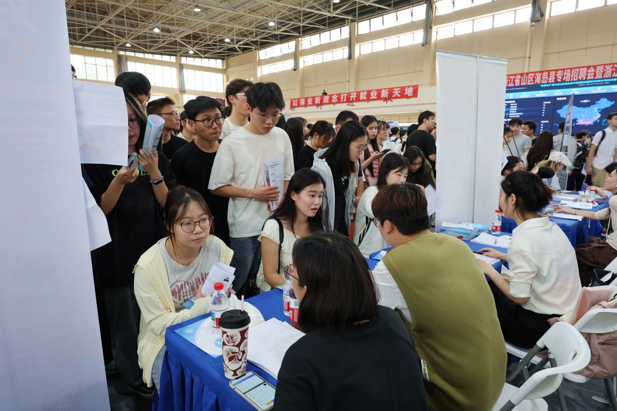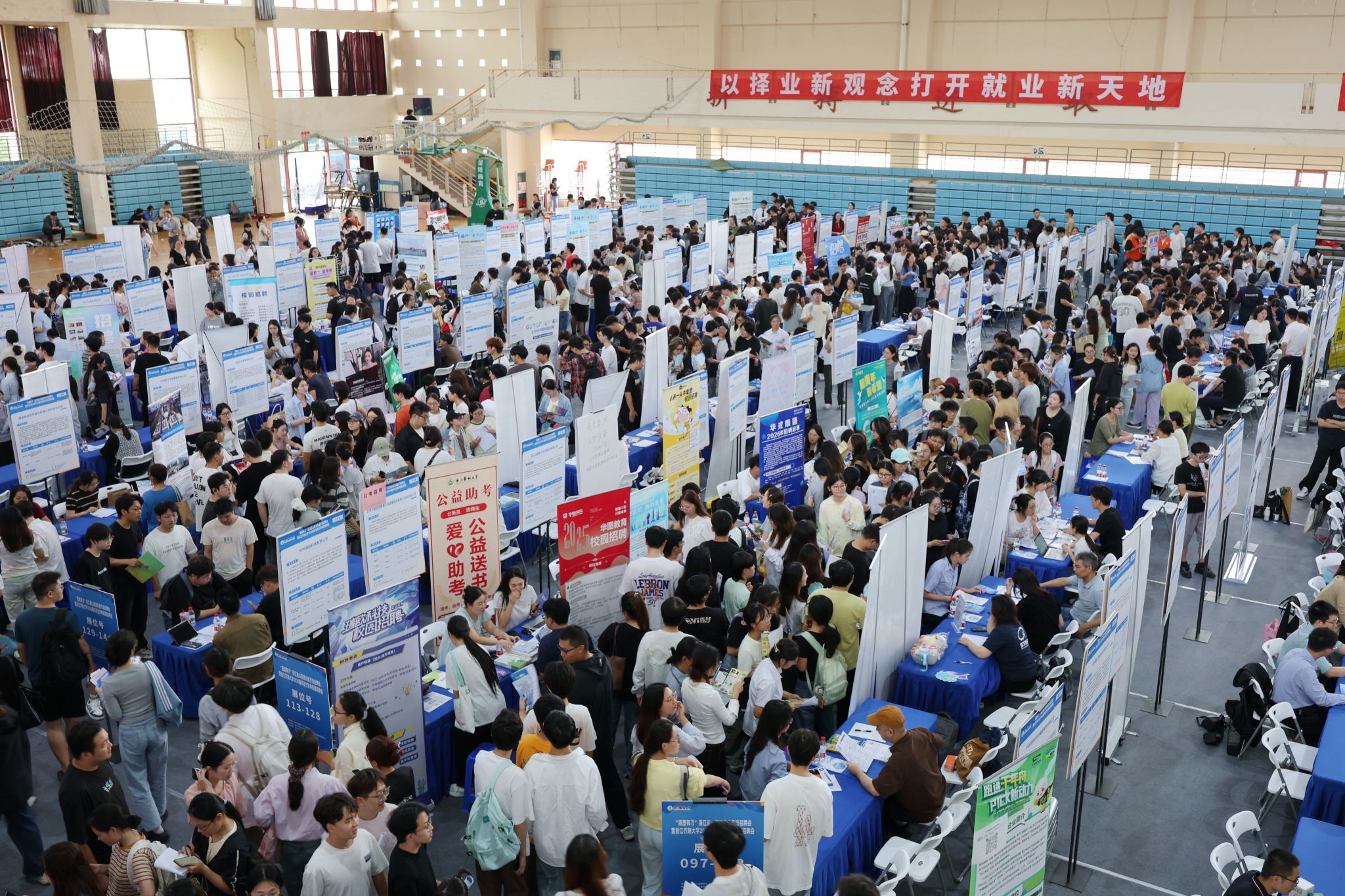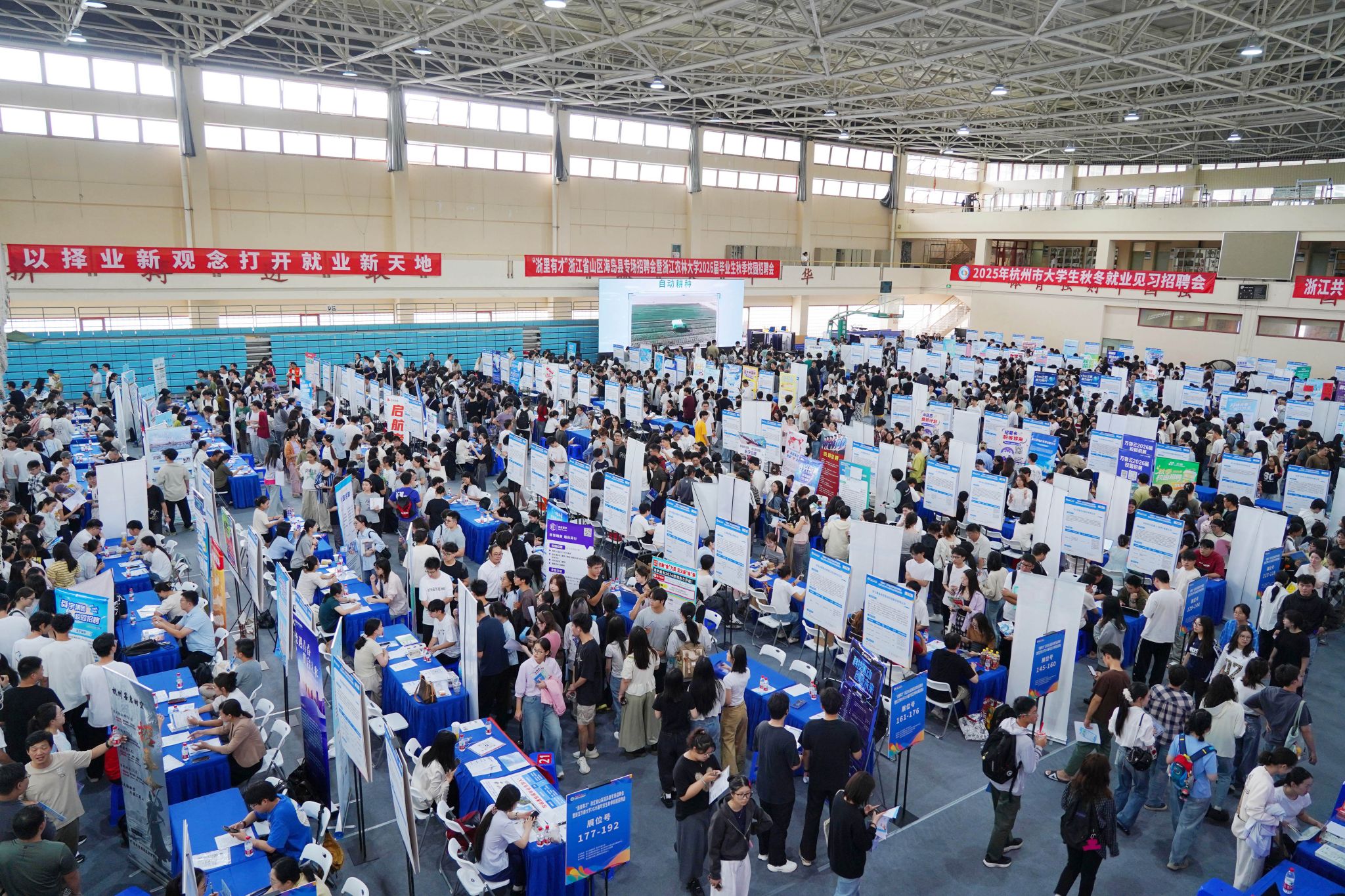 10月16日,“浙里有才”浙江省山区海岛县专场招聘会暨beat365平台唯一官网2026届毕业生秋季校园招聘会在东湖校区体育馆举行。现场气氛热烈、人头攒动,吸引了众多毕业生前来求职应聘。