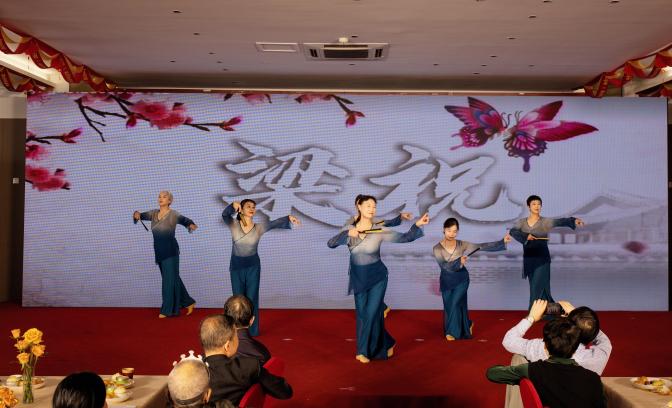 文艺演出环节,离退休老同志们用歌声、朗诵、器乐和武术展现了老有所乐的精神风貌。大合唱《我的祖国》《同一首歌》气势磅礴,诗朗诵《如果我生活在那个年代》感人至深,萨克斯演奏《十送红军》悠扬婉转,武当剑表演刚柔并济,舞蹈《梁祝》唯美动人,赢得了现场阵阵掌声。