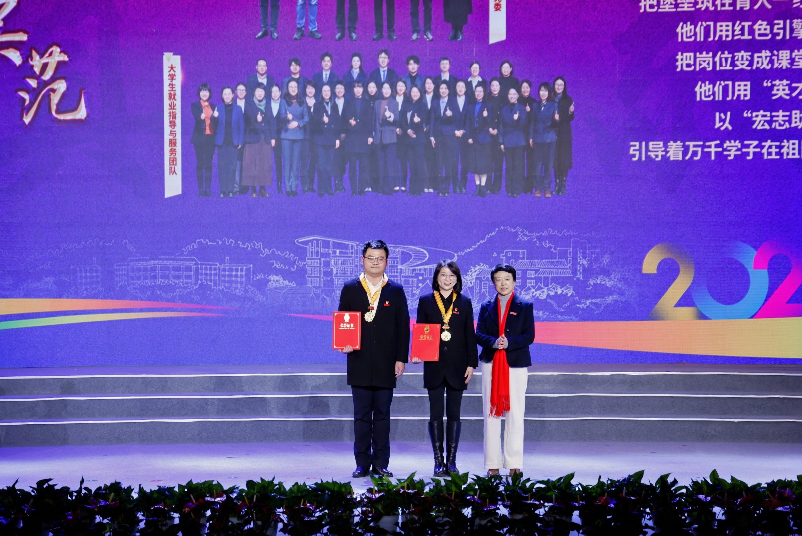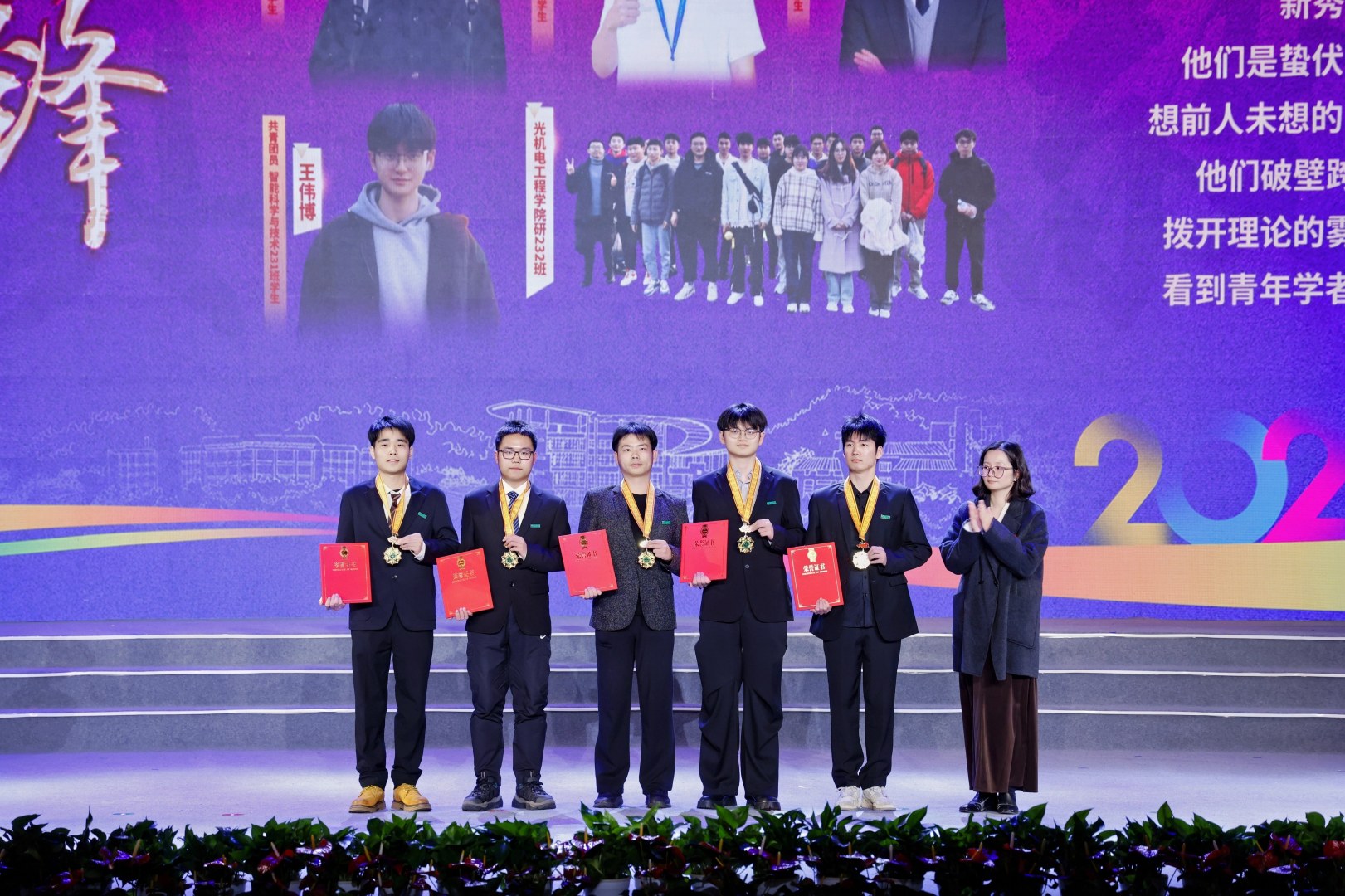 会上,根据新修订的《beat365平台唯一官网荣誉管理条例》,学校对2025年最高荣誉“求真敬业奖”获得者进行了表彰和采访,并授予“银杏勋章”;对“红绿先锋”“桃李模范”“荣誉校友”等荣誉称号获得者和集体进行表彰,并授予“枫香勋章”。