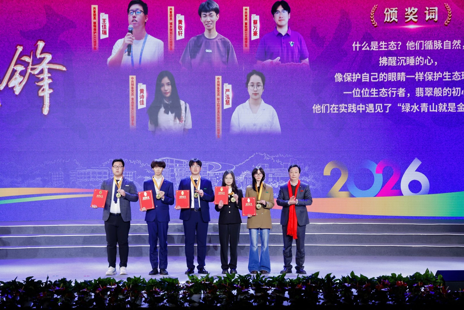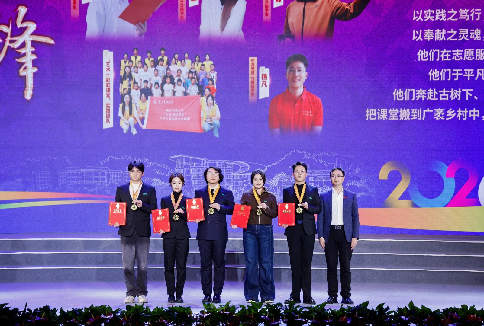 大会还对“红绿先锋”“桃李模范”“荣誉校友”等荣誉称号获得者和集体进行表彰,并授予“枫香勋章”。他们是德、智、体、美、劳全面发展,知识、能力、素质协同进阶的模范学子;是深耕教育沃土、践行教育家精神的“大先生”;是服务各领域、反哺母校发展的杰出校友代表。他们以卓越的表现,展现了浙农林大人的精神风貌。