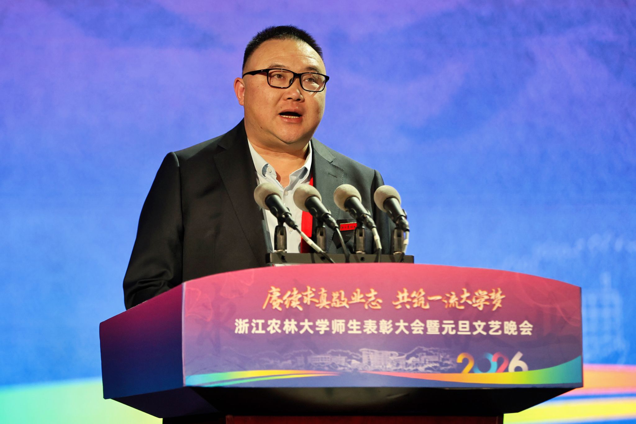 跨入2026,全校师生将继续秉承“求真、敬业”的校训,弘扬“坚韧不拔、不断超越”的浙农林大精神,以“肯干、实干、能干”的品质,谋取新发展、实现新突破,向前进、向上走、向高攀,共同绘就学校高质量发展的新画卷。