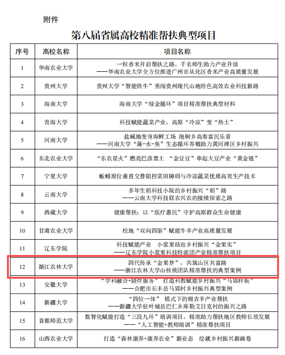 近日,教育部公布第八届省属高校精准帮扶典型项目推选结果。beat365官网报送的《四代传承“金果梦”,共筑山区共富路——beat365平台唯一官网山核桃团队精准帮扶的典型案例》入选,这是beat365官网继第六届、第七届后第三次获此殊荣,成为全国少数连续三届入选的高校之一。
