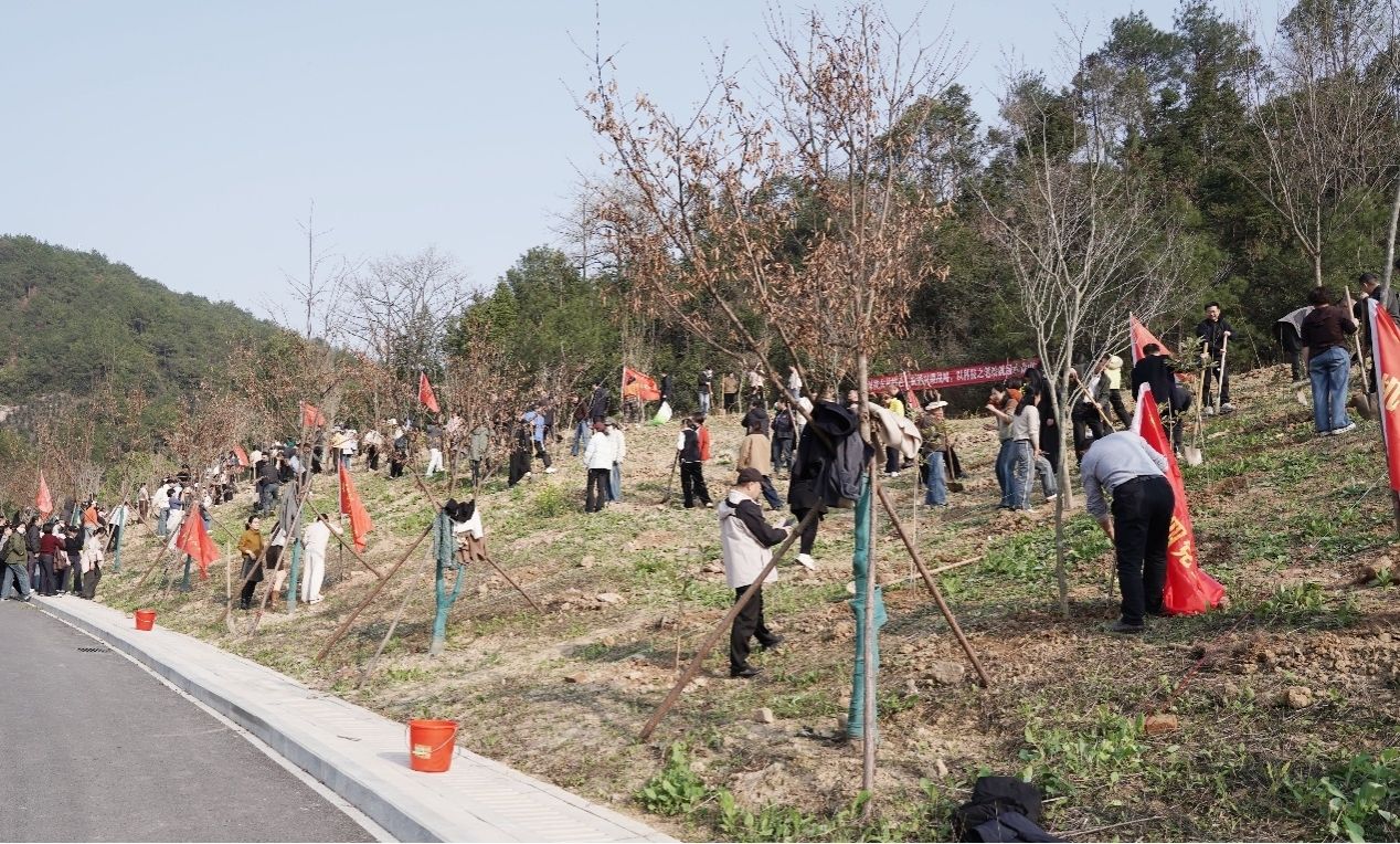 “扶苗要端正,覆土要紧实,直接关系树苗成活生长。”活动现场,植物园管理办公室的教师全程悉心指导,细致讲解银缕梅、巴山榧树、羊角槭、夏蜡梅等珍稀树种的种植技巧与日常养护要点,确保新苗扎根沃土、茁壮成长。经过1个多小时的劳作,300 余株承载绿色希望的树苗迎风挺立,错落有致地装点在校园之中,为春日的浙农林大增添了一抹盎然新绿。