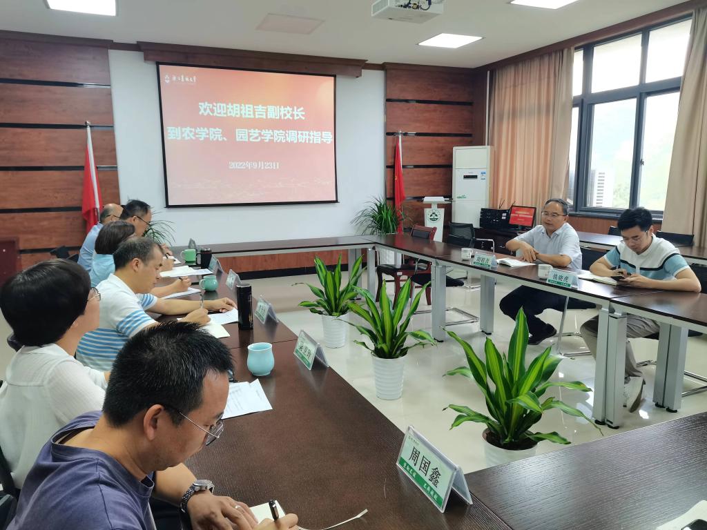 9月23日,副校长胡祖吉到农学院、园艺学院调研指导工作。农学院、园艺学院党政领导班子成员参加调研座谈会。