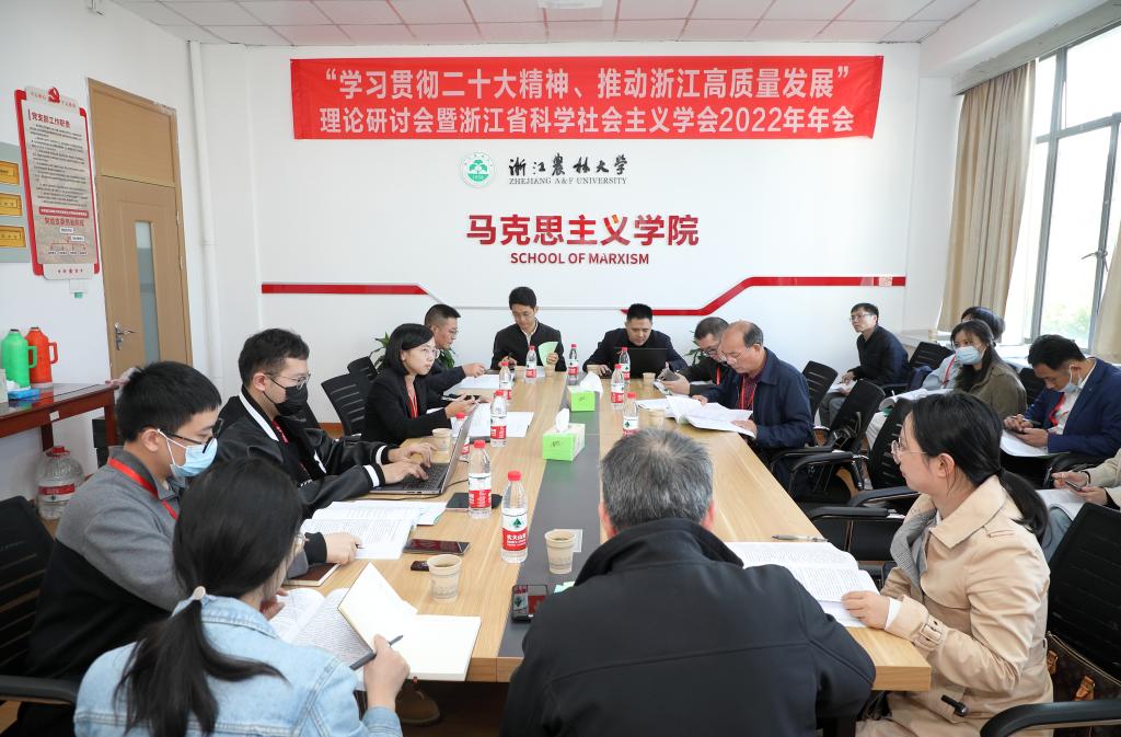 11月5日,“学习贯彻党的二十大精神、推动浙江高质量发展”理论研讨会暨浙江省科学社会主义学会2022年年会在学校举行,中共浙江省委党校副校长、浙江行政学院副院长徐明华,beat365平台唯一官网副校长徐爱俊,浙江省科学社会主义副会长王景玉和beat365平台唯一官网马院负责人出席会议。