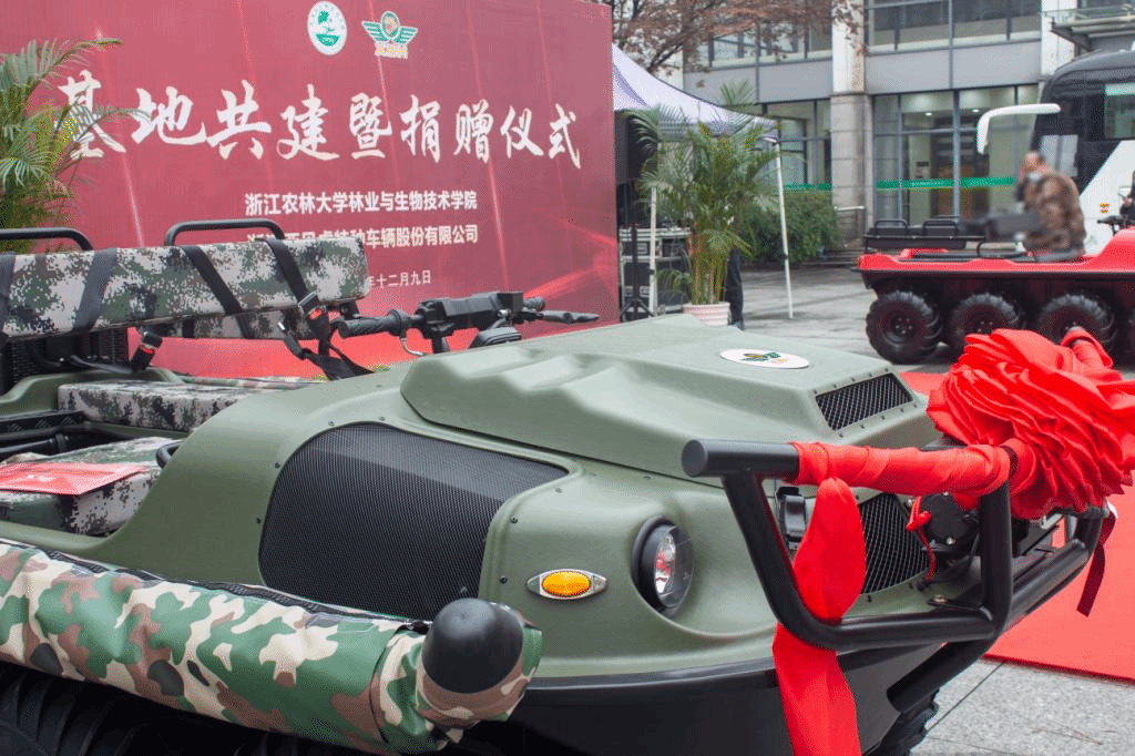 据介绍,浙江西贝虎特种车辆股份有限公司向学校捐赠两辆水陆两用全地形车,将为人才培养提供良好的实践平台,学院将充分利用这个平台,加强学生创新思维和创新创业能力的培育。