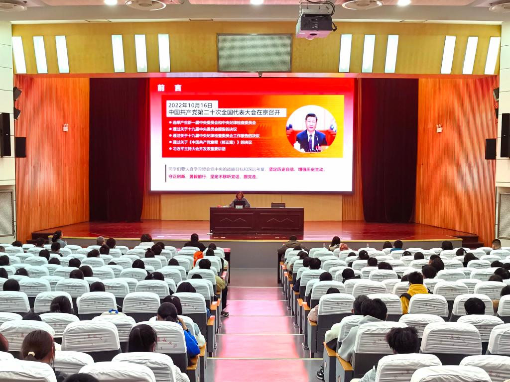 12月9日,副校长沈月琴在图书馆第一报告厅为食健学院师生代表上形势与政策课,宣讲党的二十大精神,学院党政班子成员、食品学科教工党支部和2021级、2022级本科生代表参加。