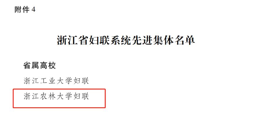 日前,浙江省妇联公布浙江省三八红旗手(集体),浙江省妇联系统先进工作者、先进集体表彰名单。校妇联获评省妇联系统先进集体,后勤服务中心获评省三八红旗集体。