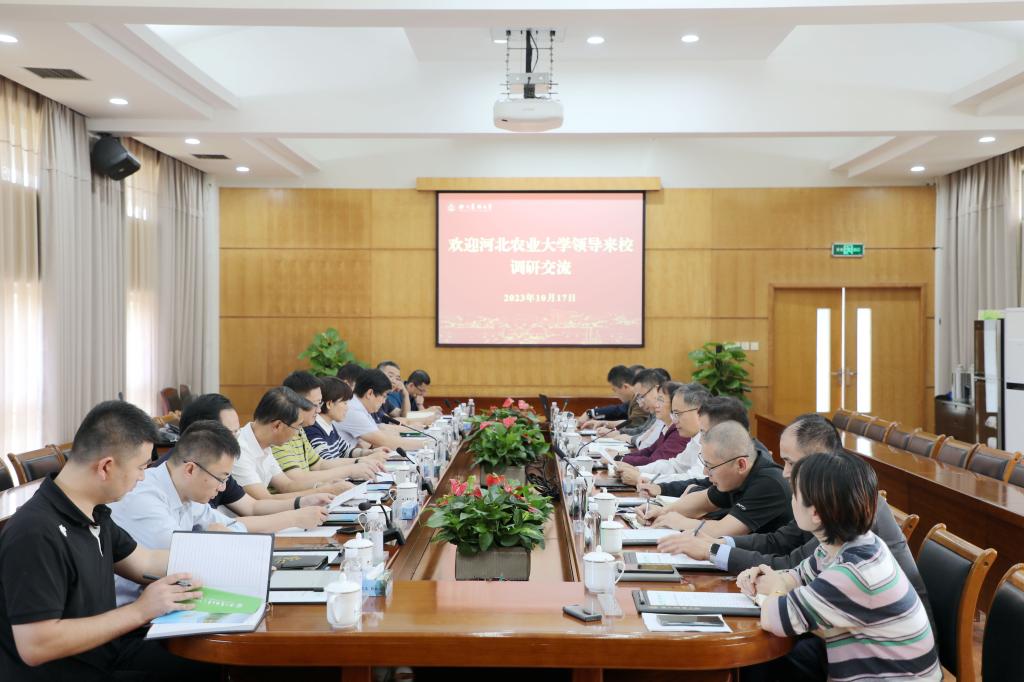 10月17日,河北农业大学副校长客绍英、赵建军、桑亚新一行来校调研交流。副校长沈月琴、胡祖吉出席调研座谈会。
