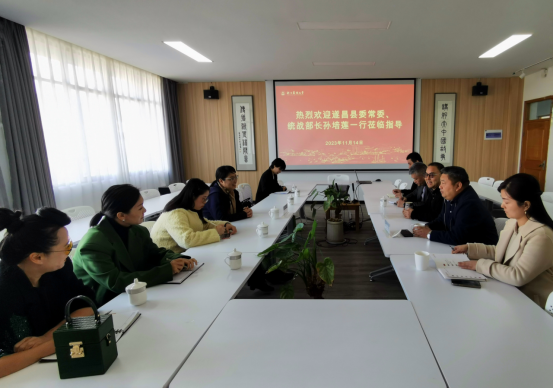 11月14日,遂昌县委常委、统战部长孙培莲一行来校调研交流,副校长吴家胜陪同调研。遂昌舒阁艺家负责人、国教学院负责人和相关人员陪同调研并参加座谈。