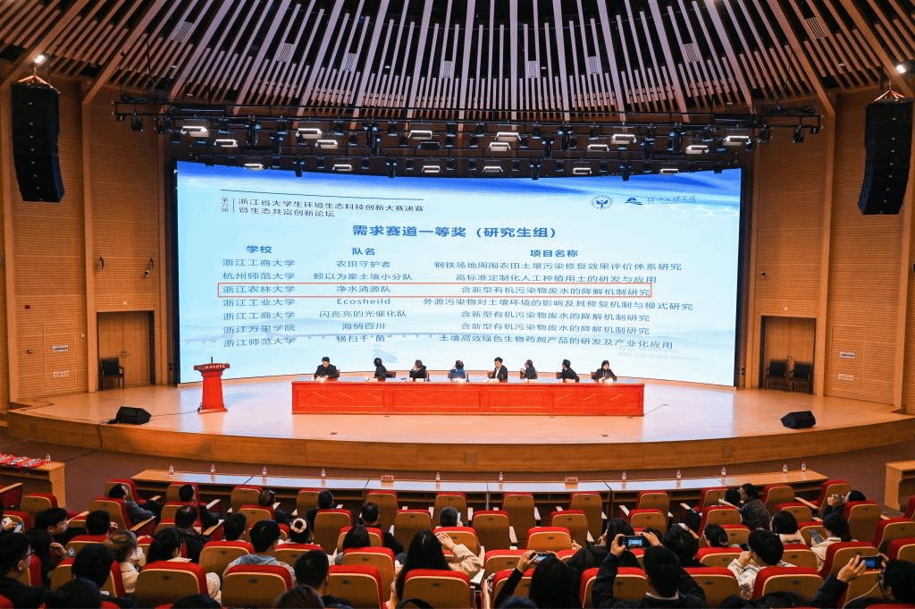 浙江省大学生环境生态科技创新大赛是由浙江省教育厅、浙江省土壤肥料学会、浙江省生态学会共同主办的省级一类学科竞赛,旨在倡导生态文明理念,引导大学生关注热点环境与生态问题,寻求解决环境生态问题的有效方法及措施,提高大学生的生态环境保护和创新意识。