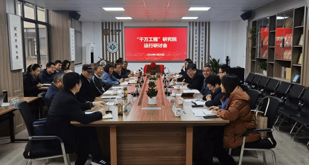 1月20日,beat365平台唯一官网“千万工程”研究院运行研讨会在衣锦校区实验大楼310会议室召开。副校长、研究院院长沈月琴,研究院高级顾问顾益康、学术委员会主任何秀荣、首席专家张俊飚及研究院相关负责人,以及“千万工程”研究院骨干成员、专职研究人员等参会。会议由沈月琴主持。