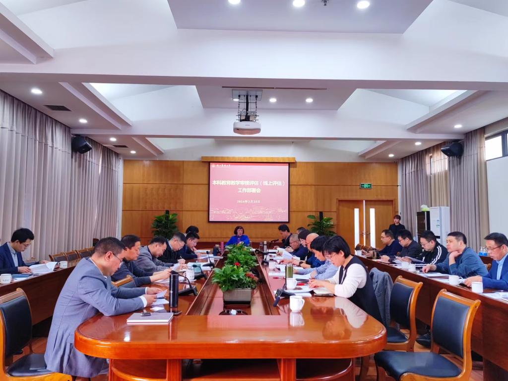 审核评建办公室负责人汇报了线上评估工作方案。各部门(学院)负责人、审核评估专家联络员分别就线上评估工作方案进行了交流和讨论。