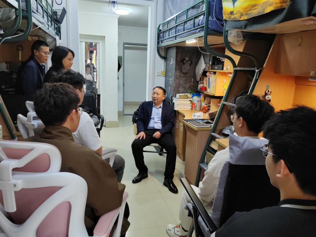 包松永走访了学生寝室,向考上研究生的同学们表示祝贺,对整个寝室同学全部升学表示了充分肯定,并结合“三支队伍”建设、自身经历和身边事例勉励大家以务实的作风立“解决卡脖子问题”的大志向、学“有利社会发展”的真本领,提醒大家不要仅仅满足于硕士学历,要有更高的学术追求。包松永还了解了同学们近期遇到的困难,并叮嘱学院加以关心和解决。同学们感谢学校、学院一直以来的关心和爱护,并表示会好好学习,为国家和社会做贡献。