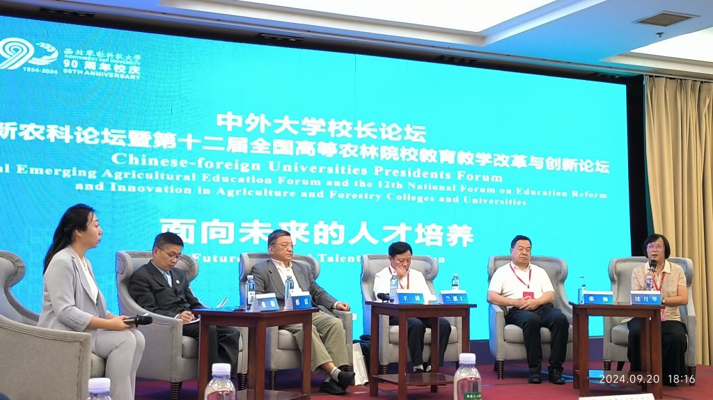 9月20日,在西北农林科技大学90周年校庆之际,在教育部高等教育司和陕西省教育厅的指导下,由全国新农科建设中心、中国高等教育学会高等农林教育分会主办,西北农林科技大学承办的中外大学校长论坛(2024年全国新农科论坛暨第十二届全国高等农林院校教育教学改革与创新论坛)在陕西杨凌举行。