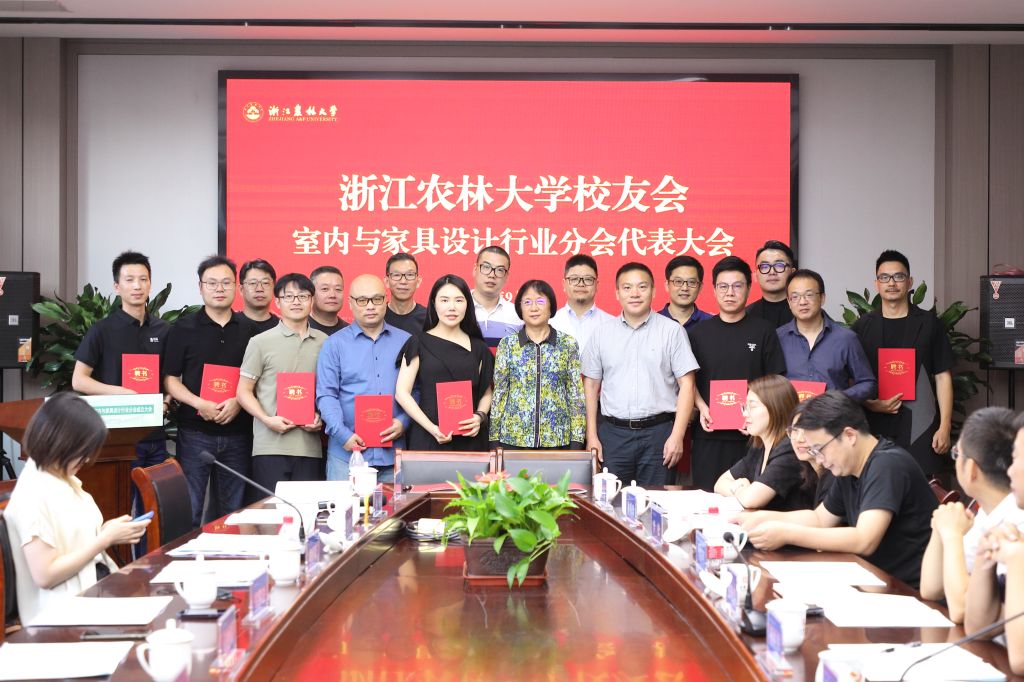 化材学院家具设计与工程专业的教师杨俊辉、胡孙跃分别汇报了室内与家具设计行业校友分会成立情况和“校友之家暨智能家具实验室”的建设情况。