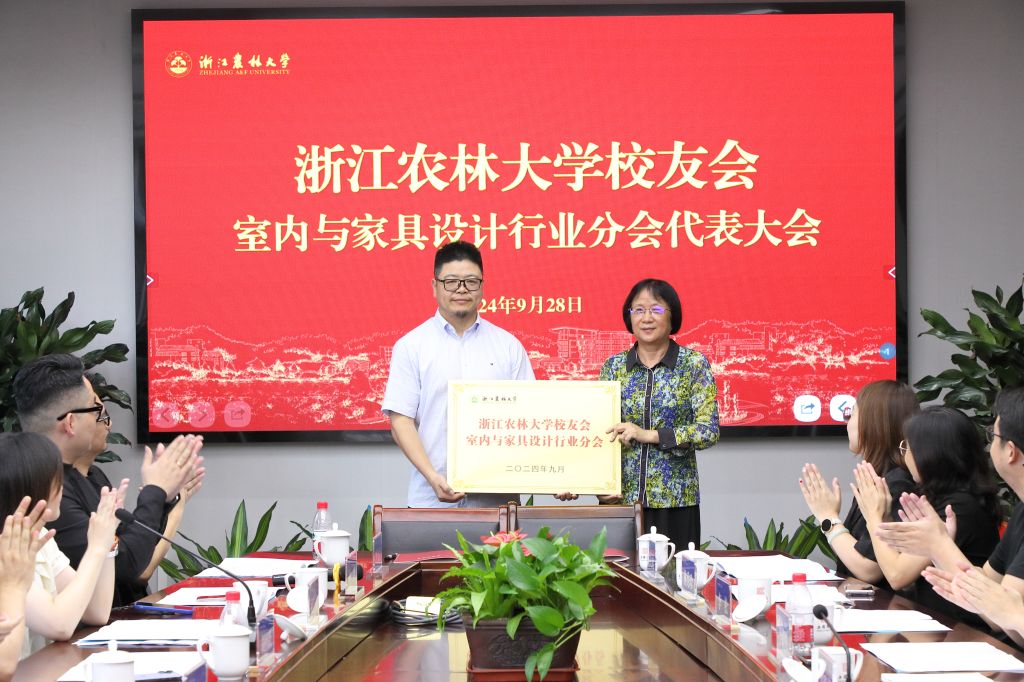 沈月琴为室内与家具设计行业校友分会授牌。