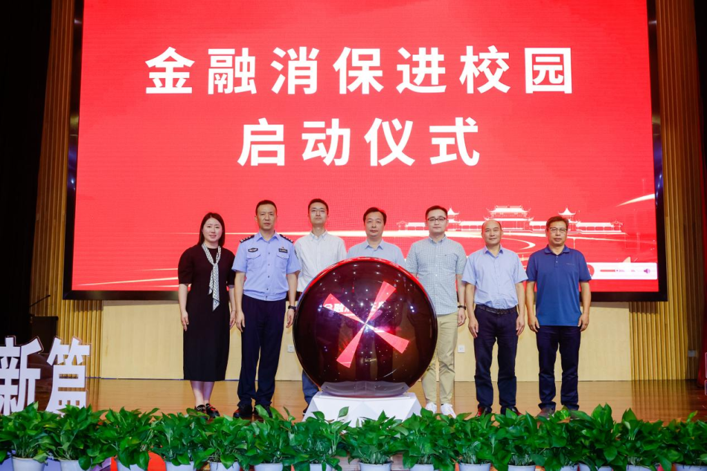 倪建均、袁冠祺、陈梁、杨鹏飞、鱼海等领导共同启动金融消保进校园活动。