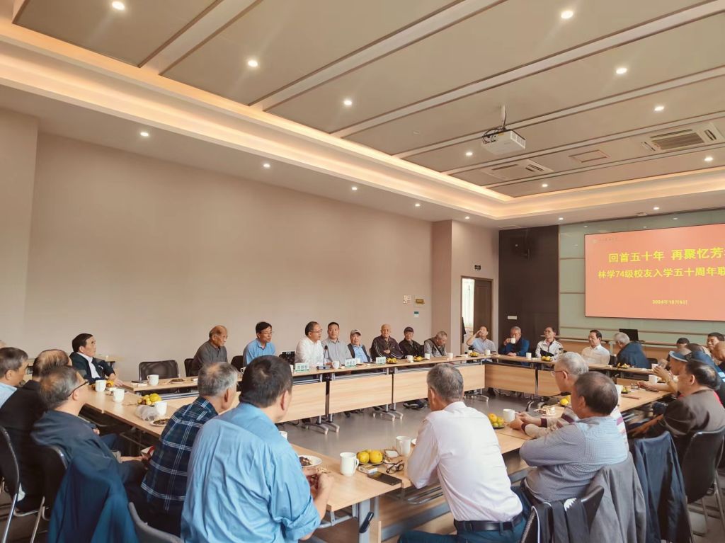 10月6日,林学74级校友进校五十周年联谊会举办。副校长胡祖吉出席座谈会,校友办、林生院负责人,时任任课教师代表李延忠、郭仁鑑、吴祖映、朱圣雄、李传发、袁荣兰与20余名校友参加座谈交流。