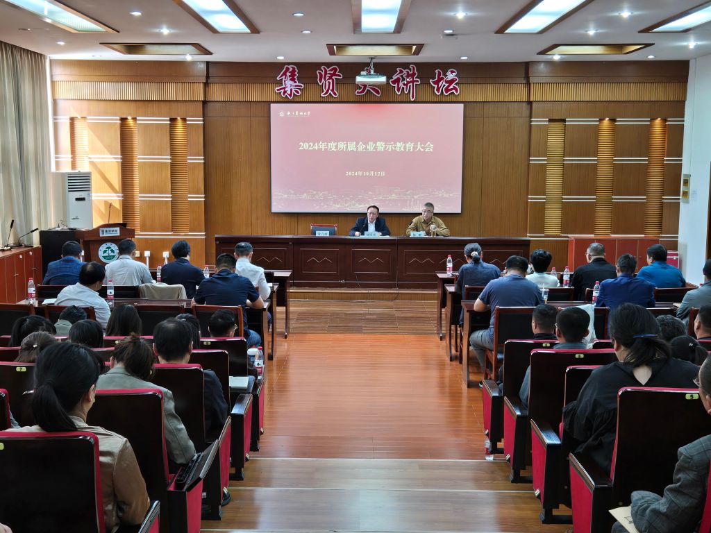 10月12日,校属企业警示教育会在集贤大讲坛召开。纪委书记包松永出席会议并作讲话,资产公司支委成员及各所属企业管理干部参加会议。