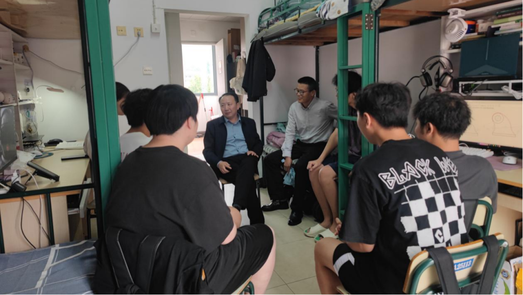 10月15日,校纪委书记包松永深入联系的学生寝室走访慰问学生。光机电学院负责人陪同走访。