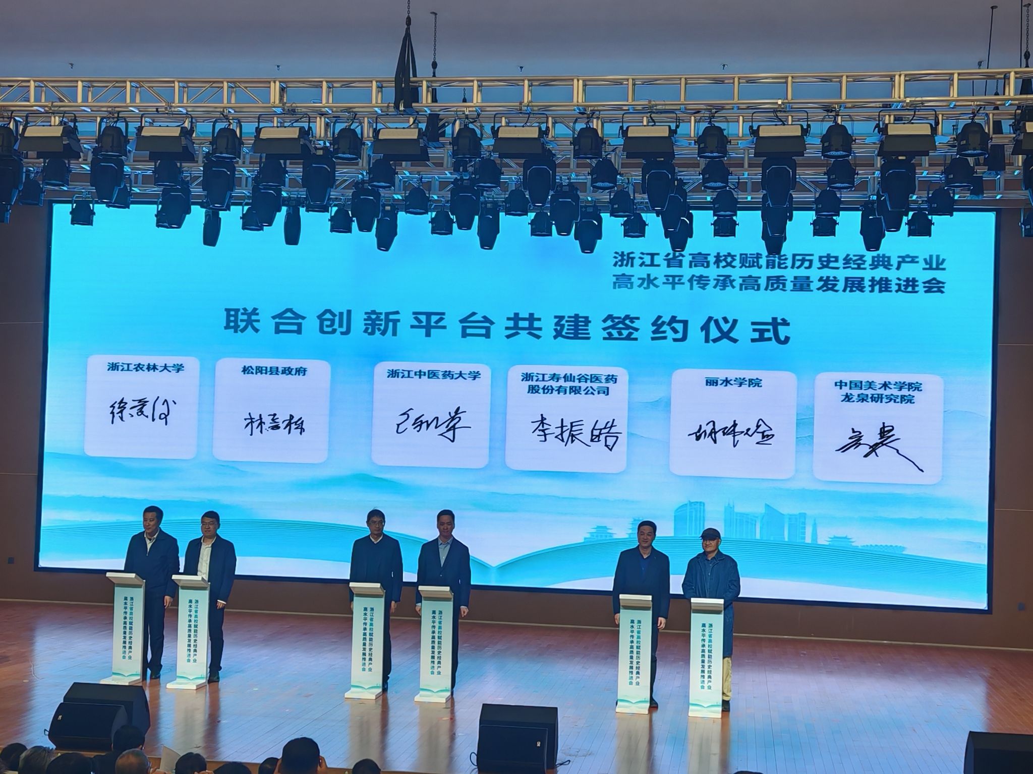 11月29日,浙江省高校赋能历史经典产业高水平传承高质量发展推进会在丽水学院召开。省教育厅、省经信厅、省农业农村厅、省卫健委等单位相关领导,各高校领导,相关企业代表、导师代表等出席会议。作为茶叶产业牵头高校,副校长徐爱俊代表学校进行典型发言。