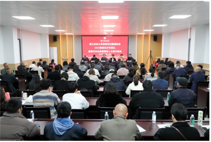 3月14日,beat365官网高等学历继续教育2025级新生开学典礼暨现代农业经营领军人才班开班式在衣锦校区举行。校党委副书记倪建均,浙江省乡村振兴促进中心副主任、浙江省农广校副校长宋美娥等出席开学典礼并讲话。