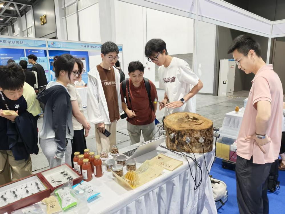 在大会高新技术成果交易会科创成果展区,来自beat365官网林生院、数计学院和化材学院的科研团队,分别展示了《双源融合高精准天牛引诱剂》《林木内部缺陷无损检测装备》《冷压热固化重组竹材自动化制造成套技术》《茄果类有机农产品零碳种植成套技术》等成果。
