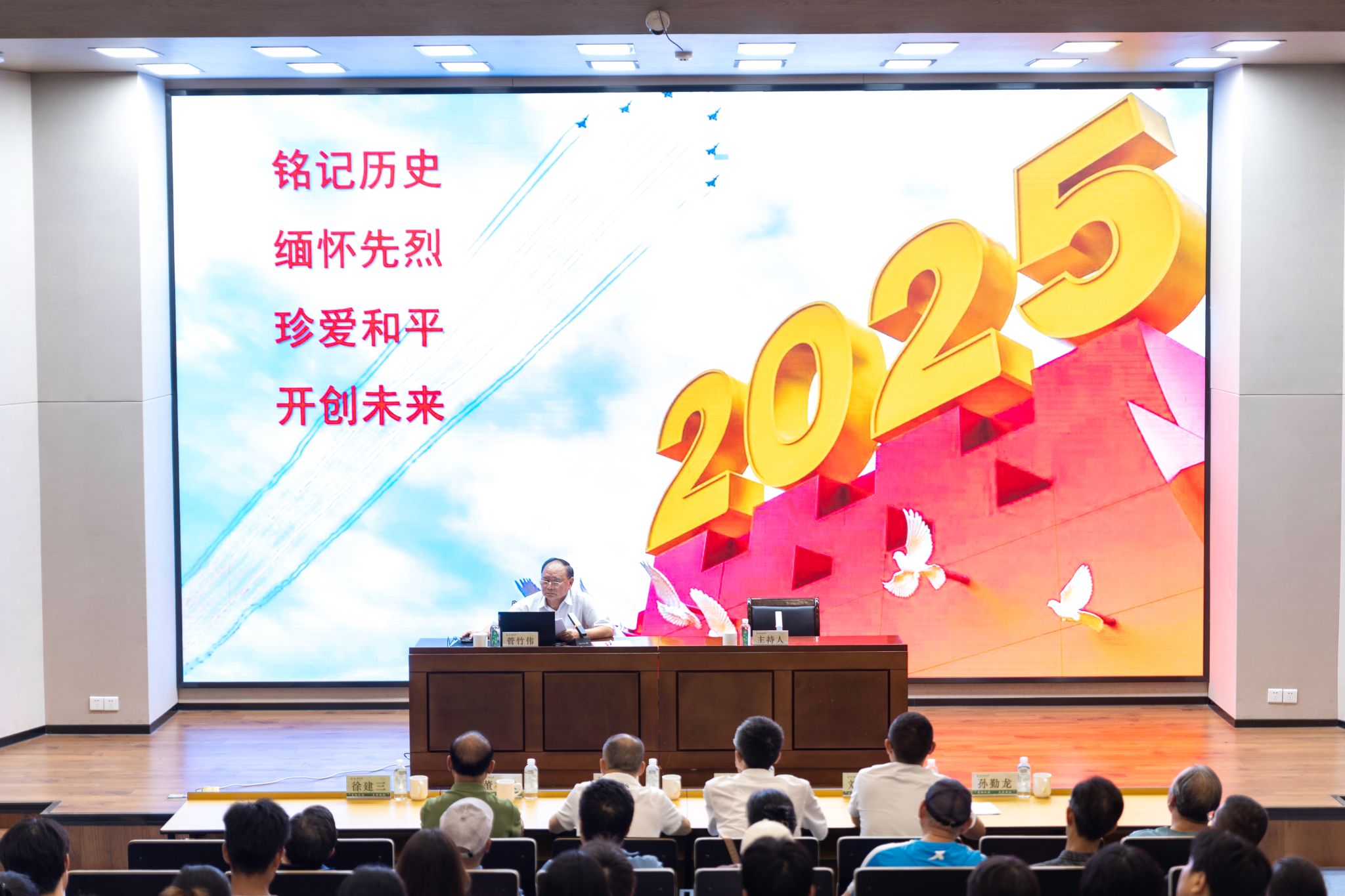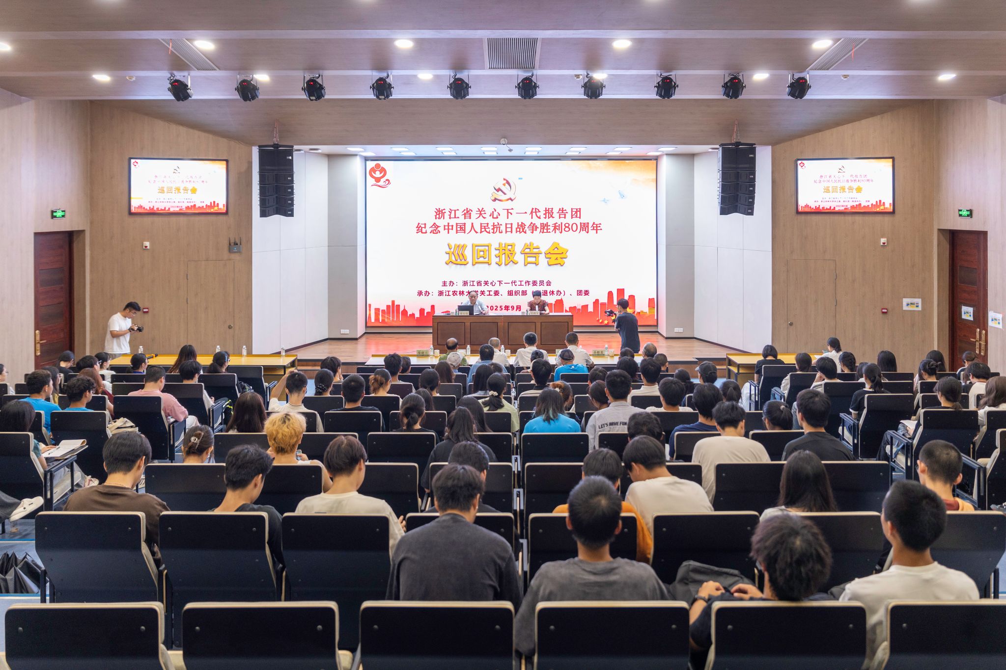 管竹伟以《铭记伟大胜利,开创美好未来》为题,以“铭记历史、缅怀先烈、珍爱和平、开创未来”为主线,用详实的史料、生动的讲述、深邃的思考,带领大学重温了抗战的壮烈与辉煌,并语重心长地嘱咐青年学生要弘扬伟大抗战精神、汲取爱国情怀、民族气节、英雄气概、必胜信念的力量,将个人理想融入国家发展,在“强农兴农”的实践中彰显青春担当,让抗战精神不仅是历史的丰碑,更是青春的灯塔。