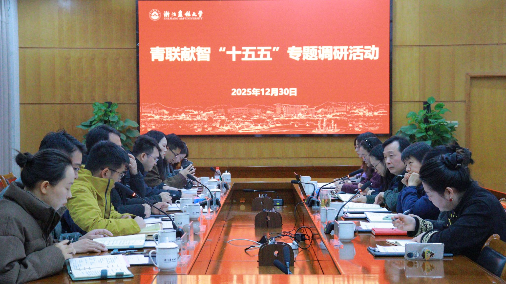团中央青联献智“十五五”专题调研组,学校宣传部、学工部、研工部、团委、茶学院等相关负责人参加座谈。