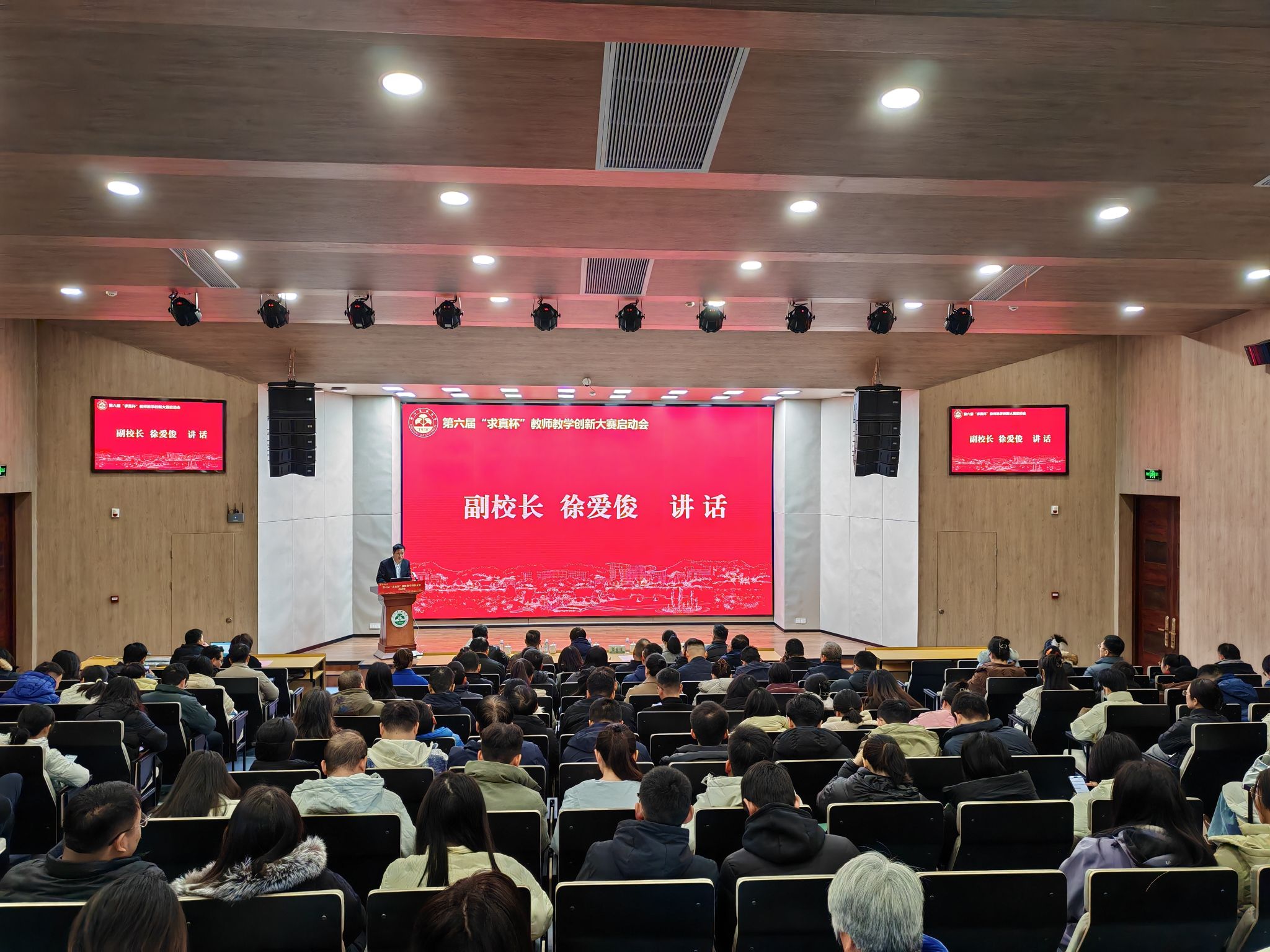 1月12日上午,beat365平台唯一官网第六届“求真杯”教师教学创新大赛启动会在东湖校区学三国际报告厅举行。副校长徐爱俊出席活动并讲话。