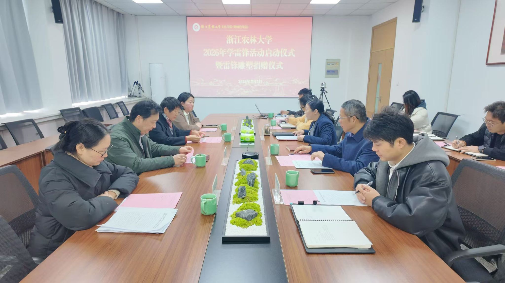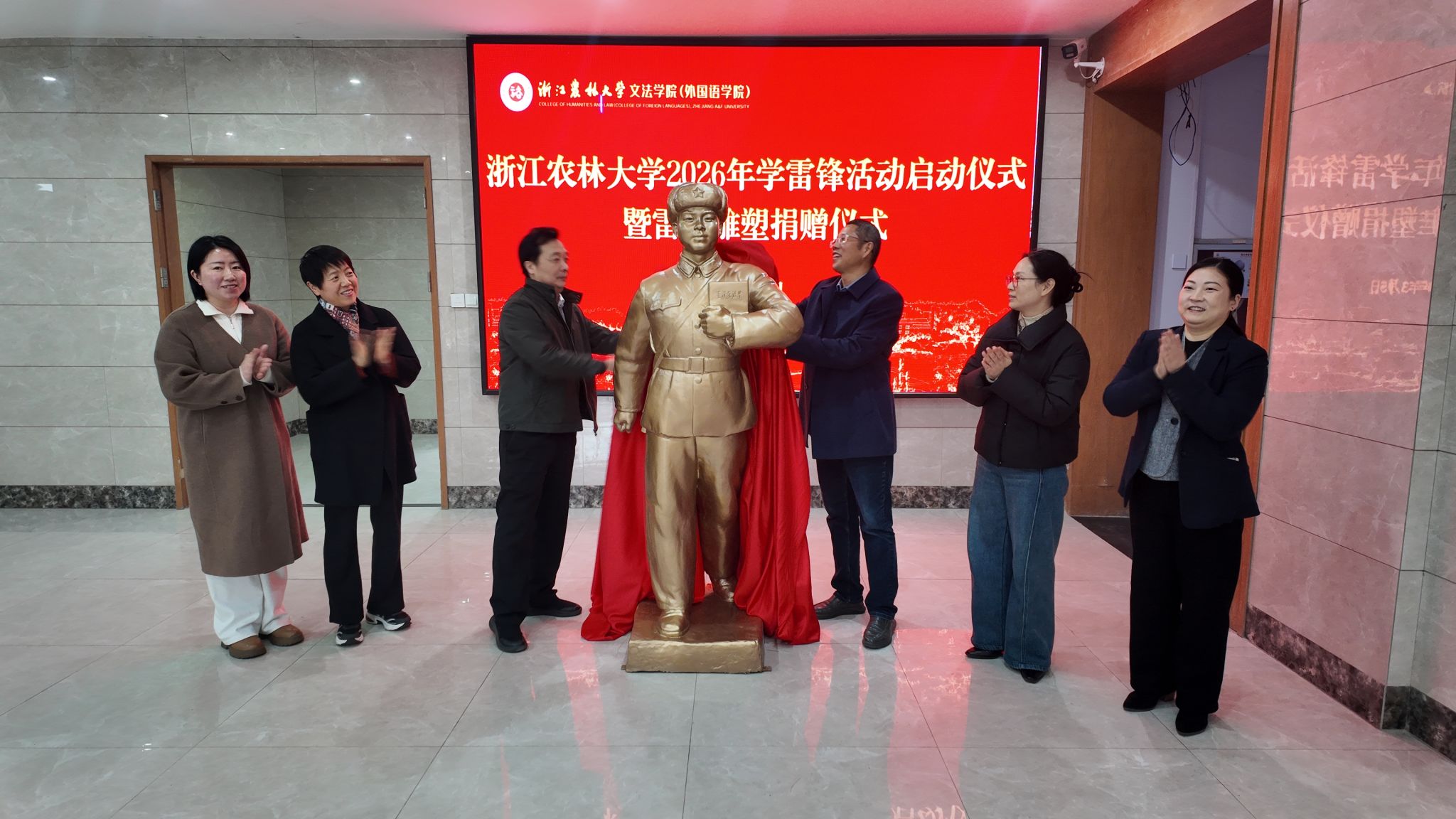 3月5日,是全国第63个学雷锋纪念日,学校在衣锦校区实验大楼612举行2026年学雷锋活动启动仪式暨雷锋雕像捐赠仪式。校党委副书记倪建均出席仪式。校党委宣传部、校团委、校友办、文法学院相关负责人及雷锋雕像捐赠人、汉语言文学专业2025届毕业生徐艺婷同学参加仪式。