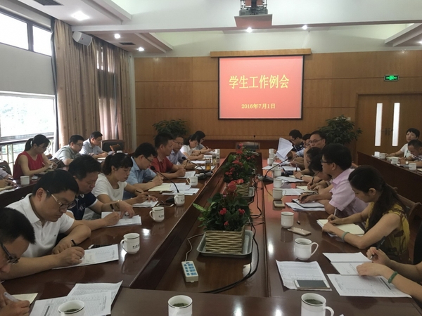 7月1日上午,学校学生工作例会在行政楼302会议室召开,传达上级会议精神,部署近期重要工作。校党委副书记史永安,党委委员、宣传部部长胡祖吉,学工部、研工部、保卫处等部门负责人,各学院分管学生工作负责人、各学生办负责人参加会议。