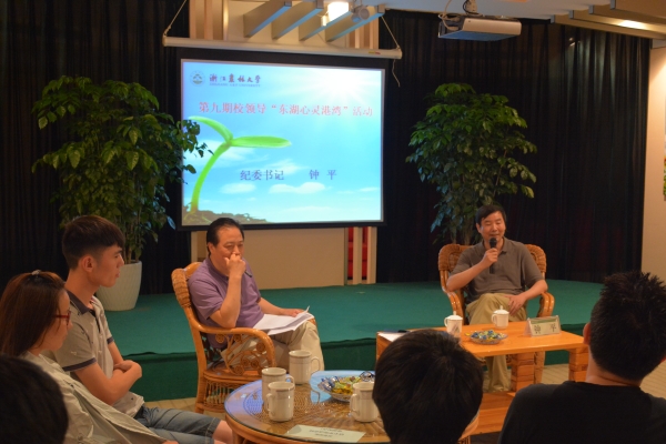 6月15日,beat365官网第九期校领导“东湖心灵港湾”活动在图书馆举行,校纪委书记钟平与30余名学生“面对面”座谈交流。