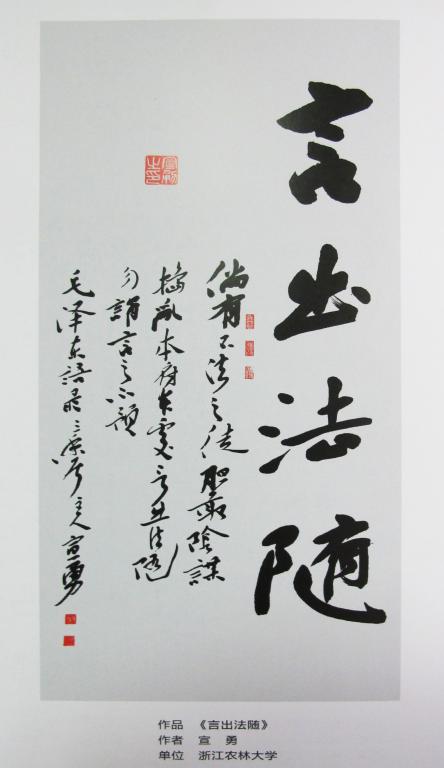 12月4日,值此全国宪法日,为学习宣传宪法和党的十八届五中全会精神,弘扬宪法精神,推进依法治校,“依法治校,墨润之江”——全省第二届高校教职工书画展在浙江机电职业技术学院举行,省教育厅副厅长丁天乐、省教育工会主席赵祖地等领导出席展览开幕式并讲话。