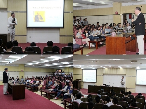 黄建南结合自身的经验体会,介绍了美国高等教育发展现状及存在的问题,并从“三维”、“四维”、“五维”等不同角度来勉励大学生做好人生规划,广交朋友,团结协作,自主发展。