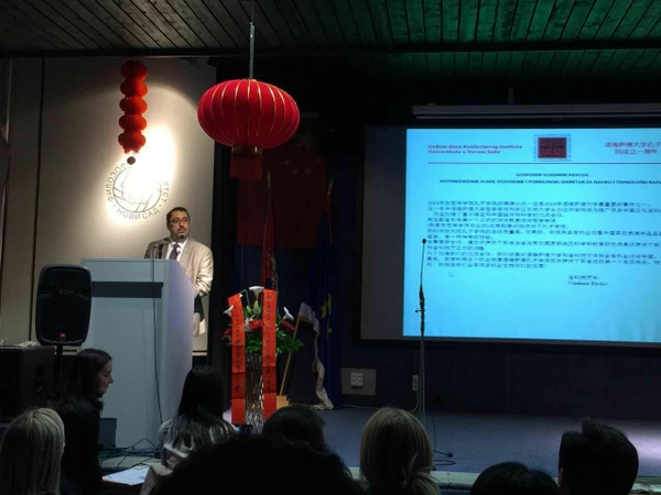 当地时间5月27日,诺维萨德大学孔子学院在建院一周年之际,举办了盛大的周年庆典活动,伏伊伏丁那省副省长兼科技厅厅长Pavlov、中国驻塞使馆文化参赞徐宏、诺维萨德大学副校长Sekerus与中塞交流协会的领导们及来自全塞近20所教育机构的师生出席了庆典活动。