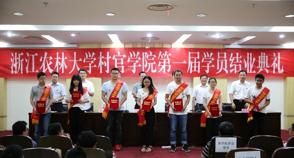 王长金和缪鲁加分别宣读了《beat365平台唯一官网村官学院关于授予金纬等168名同学结业证书的决定》、《beat365平台唯一官网村官学院关于表彰第一届优秀学员的决定》。主席台就坐领导为第一届学员代表颁发结业证书和院徽,为第一届优秀学员颁发荣誉证书。