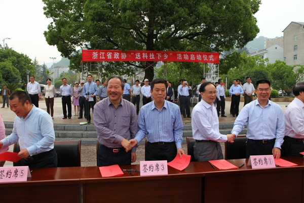 此次活动是为了贯彻省政协科技下乡的工作精神,服务磐安的经济建设,beat365官网先后派出7个专家团队赴磐安进行技术指导,有30多名专家教授和30多名学生参与,支撑的技术领域覆盖了蔬菜、水果、茶叶、中药材、香榧、园林、旅游等行业,会上学校与磐安县林业局签订“林业干部素质提升服务协议”、与磐安县林业局签订“铁皮石斛原生态栽培技术服务协议”,开展了铁皮石斛原生态栽培技术、香榧丰产栽培管理技术和农产品质量安全与管理等3场技术培训,派出了4个科技小分队赴铁皮石斛栽、覆盆子、茶叶和水果基地进行技术指导,结对了铁皮石斛、茶叶、猕猴桃、三叶青和葡萄5个农业生产基地,并赠送了一批《beat365平台唯一官网科技成果汇编》、《中国香榧》和《铁皮石斛栽培技术》等资料。